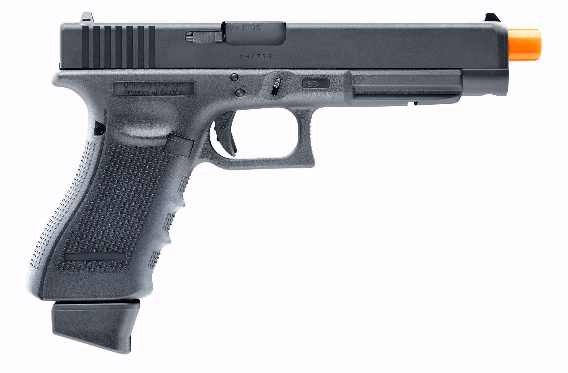 Are you ready for the long slide? The GLOCK 34 Gen 4 6mm airsoft pistol is your long slide answer to airsoft pistol competition. With the main benefit being a much longer sight radius, the long slide GLOCK 34 allows the shooter to take longer, more accurate shots. With an average velocity of 330 FPS with a .20g BB, Full Blowback, 23 Round Capacity CO2 Magazine, Adjustable Hop-Up, and under barrel accessory rail, the GLOCK 34 Gen 4 airsoft pistol is ready to go to work for you on the airsoft field.