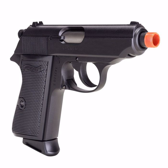 The Elite Force Airsoft officially licensed Walther PPK/S Green Gas Blowback 6mm airsoft pistol is a faithful replica of the iconic firearm famously carried by James Bond. This compact, full-metal pistol delivers authentic blowback action, mimicking the real PPK/S with every shot. Firing .20g BBs at 250 FPS, it features an adjustable hop-up for enhanced accuracy and range. The aluminum inner and outer barrels and realistic decocking function add to its durability and authenticity. Designed to fit holsters made for the Walther PPK/S firearm, this 13-round capacity pistol is perfect for collectors and airsoft enthusiasts seeking a blend of history and performance. Step into the legacy of this legendary sidearm with unmatched style and precision.